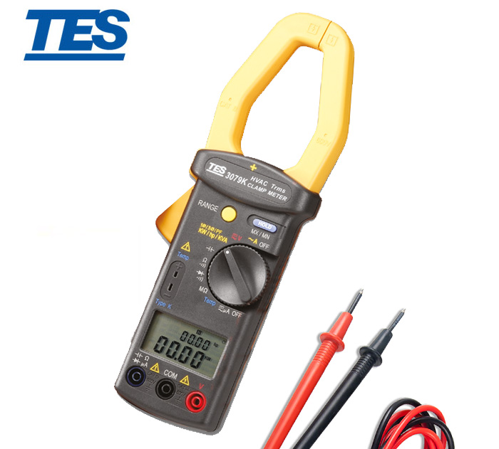 پاورمتر انبری TES-3079K قابلیت اندازه گیری توان تک فاز و سه فاز بالانس شده تا 600KW را دارد. نمایش دما توسط ترموکوپل نوع K امکان چک کردن گرم شدن موتور یا بار را می دهد. کلمپ جریان سه فاز TES-3079K علاوه بر مزایای ذکر شده مولتی متر می باشد و میتوان مقادیر مقاومت تا 100MΩ، خازن تا ۷۰۰۰µF، فرکانس تا 1KHz و زاویه فاز را اندازه گیری نمود.