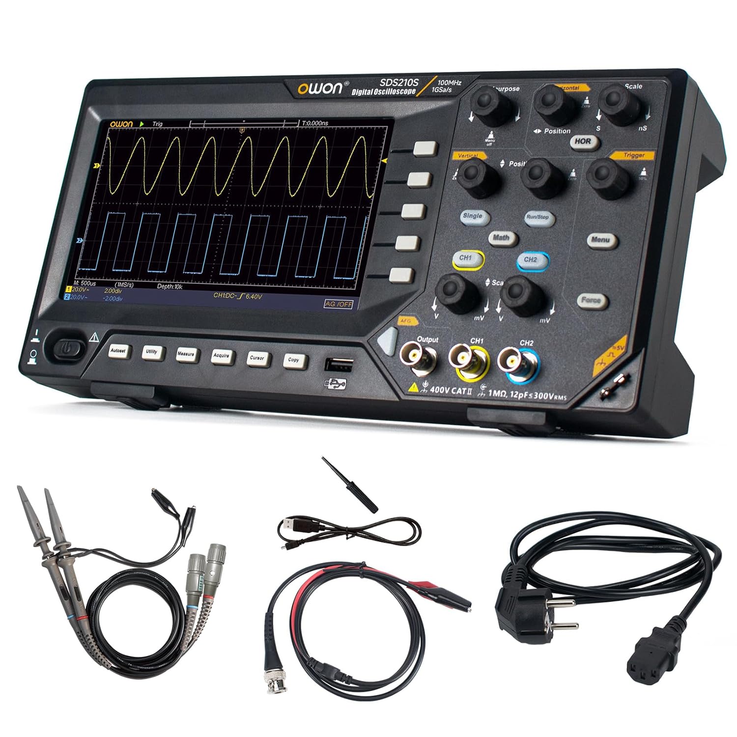 دستگاه اسیلوسکوپ دیجیتال 200MHZ + فانکشن ژنراتور برند OWON مدل SDS220S با صفحه نمایش LCD رنگی از نوع ۷ اینچ که نسبت به نوع لامپی عمر بالاتری دارد و به شما این امکان را می دهد که شکل موج ها را دقیق بررسی کنید، این تجهیز دارای گین و رزولوشن امکان قرائت راحت تر و دقیق تر را فراهم نموده است. این دستگاه بسیار اقتصادی بوده و طوری طراحی شده تا سبک و قابل حمل باشد. هم چنین توان مصرفی کم این اسکوپ می تواند پارامتر مهمی برای انتخابش باشد.
